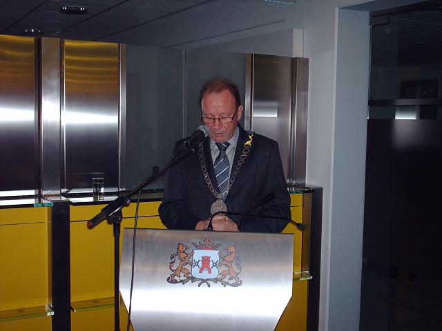 We gaan zo dadelijk met elkaar het glas heffen op dit nieuwe jaar, op 2013. Met het heffen van het glas wensen we elkaar een gezond en goed nieuw jaar toe. Maar voorafgaand aan dit toch altijd feestelijke moment wil ik graag met u terugblikken op 2012. Wat hebben wij meegemaakt, wat is ons overkomen en waar hebben wij ons met elkaar hard voor gemaakt. 2012 was een bewogen jaar. 2012, het jaar van de nieuwe tweede Kamerverkiezingen, het jaar waarin twee uiterste partijen samen een regering hebben gevormd, en die nog een zware tijd tegemoet gaat. 2012 is het jaar dat president Obama weer herkozen is. 2012 is ook het jaar dat het Syrische volk steeds meer te lijden heeft onder haar regime. 2012 is het jaar dat de Euro in grote nood verkeert. Kortom, een jaar waar we met elkaar niet over uitgesproken raken.