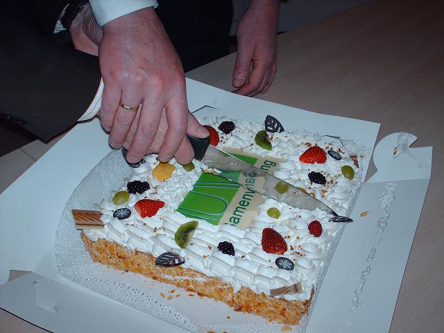 En tot slot was er een toepasselijke taart die gezamenlijk werd aangesneden