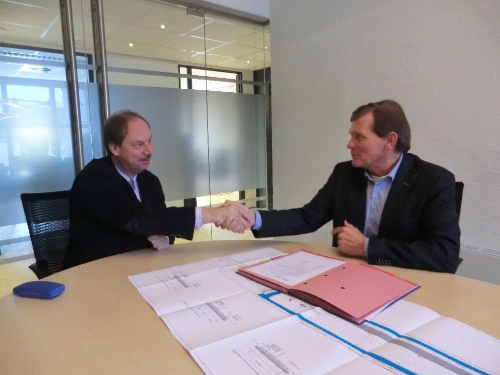 Geplaatst op:22-11-2013 Bijgewerkt op:22-11-2013 15:57 Wethouder Jonkers en firma Jos Scholman zetten handtekeningBron: gemeente MontfoortFirma Jos Scholman wint aanbesteding