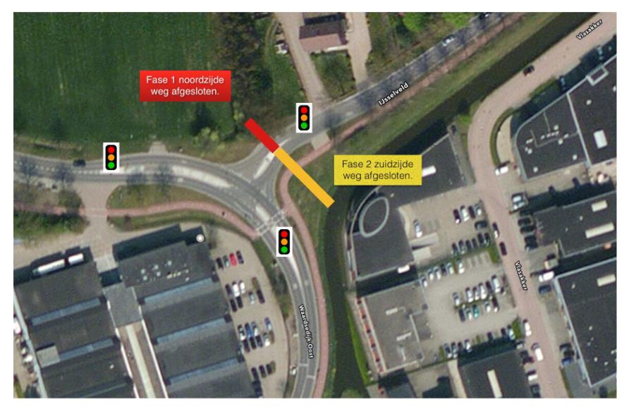 Geplaatst op:14-04-2016 Bijgewerkt op:14-04-2016 16:20 Werkzaamheden bij de kruising Waardsedijk Oost en IJsselveldBron: gemeente MontfoortOp maandag 18 april start Jos Scholman BV met werkzaamheden bij de kruising Waardsedijk Oost en IJsselveld. Om het stelsel van riool en sloten definitief toekomstbestendig te maken moet de duiker bij de kruising worden vergroot. De werkzaamheden worden in twee fases uitgevoerd. Eerst wordt de noordelijke weghelft aangepakt en na afronding van deze werkzaamheden start men met de zuidelijke weghelft. De weg en de kruising blijven tijdens de werkzaamheden gewoon toegankelijk. Overdag begeleiden verkeersregelaars het verkeer en in de avonden en weekenden worden verkeersregelaarsinstallaties ingezet. De werkzaamheden zijn naar verwachting binnen twee weken afgerond.